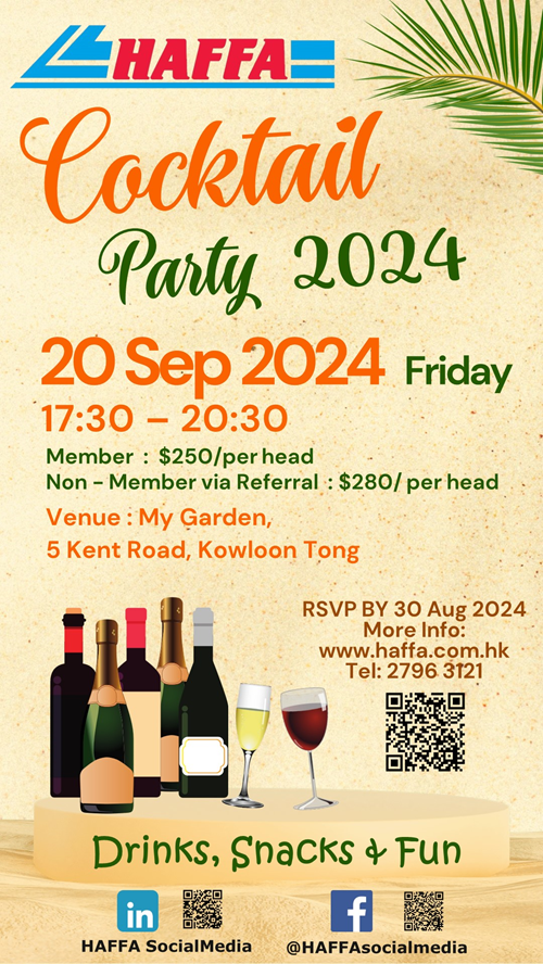 We do hope you enjoyed the networking opportunity, and the sharing delivered by the guest speaker. For the sake of easy reference, the PowerPoint (Chinese version only) has been uploaded onto the HAFFA website. Interested Members please download the file from the hyperlink below for your kind information: