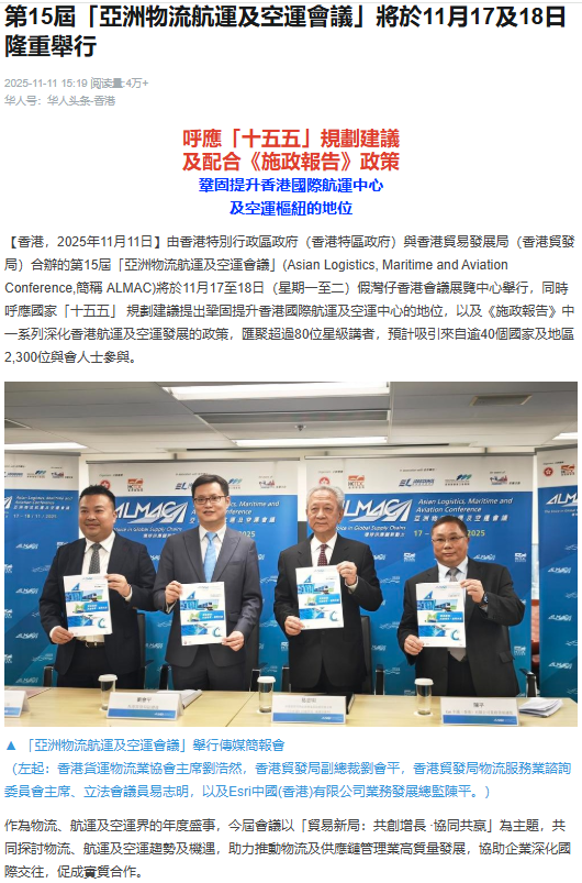Media Interview with HAFFA Chairman - 第15屆「亞洲物流航運及空運會議」將於11月17及18日隆重舉行 (華人頭條)